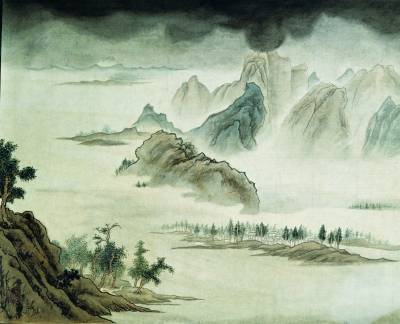四 雨過天青,田野森林,生氣蓬勃,綠嫩青蔥。好比欲嘗物質豐盛,刻苦修行的人,終能如願以償,身心舒暢。