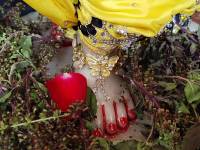 至尊主的蓮花足之美被比喻為秋季盛開的蓮花花瓣。自然界在秋天使渾濁的水變得清澈,這時的蓮花顯得格外美麗。蓮花被用來比喻至尊主的蓮花足,而花瓣則象徵至尊主的腳指甲。布茹阿瑪‧讚(Brahma-samhitā)證明了至尊主的腳指甲非常明亮。至尊主的每個肢體都是由超然的ananda-cinmaya-sad-ujjvala構成,永遠發光。